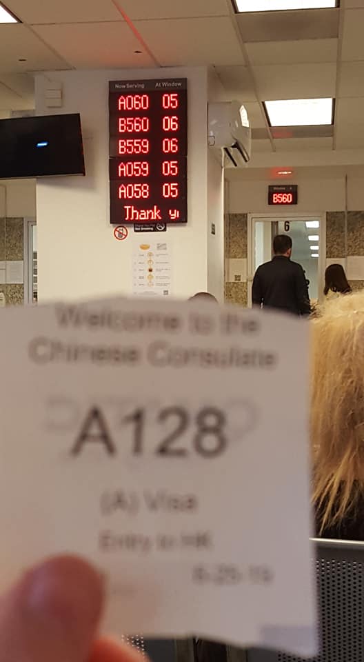 That next morning, we left one hour before they opened to get to the consulate before the crowds. Because we knew the area better now, we got there in only 15 minutes and climbed to the third floor. Even with almost 40 minutes before opening, there was a line of over 30 people ahead of us! I thought that once the doors opened, only a fraction of us would end up in the pick-up line and we would be done quickly. Well apparently, 97% of them were also there to pick up visas and were subsequently in front of us inside.