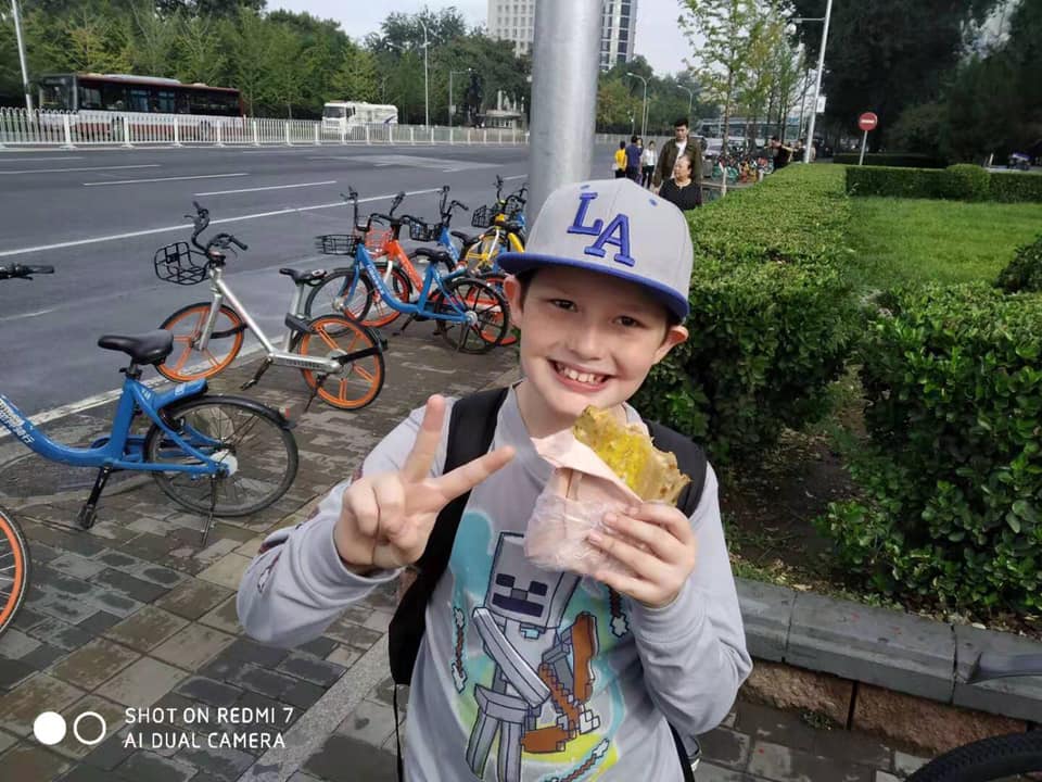 The trip was being offered during our school’s three-day weekend for the mid-Autumn festival. We were leaving Friday morning and coming back Saturday afternoon. This left us enough time to recover on Sunday before heading back to school on Monday. The tour group had three pick-up points and we chose the one a 20 minute didi ride from us. We showed up 30 minutes early and saw a food stall right outside our meeting location. We saw the jianbing griddle and asked the vendor to make us one, since we haven’t had the chance to eat any street food since being in Beijing. The vendors really enjoyed us taking pictures of them making our food, so they returned the favor by taking pictures of us while we ate. The jianbing was only 7 rmb, or $1, but it was HUGE. It was made from flour and egg making the tortilla-like shell, and stuffed with bean paste, chili oil, cilantro, scallions, and a large cracker. Calvin loved it!