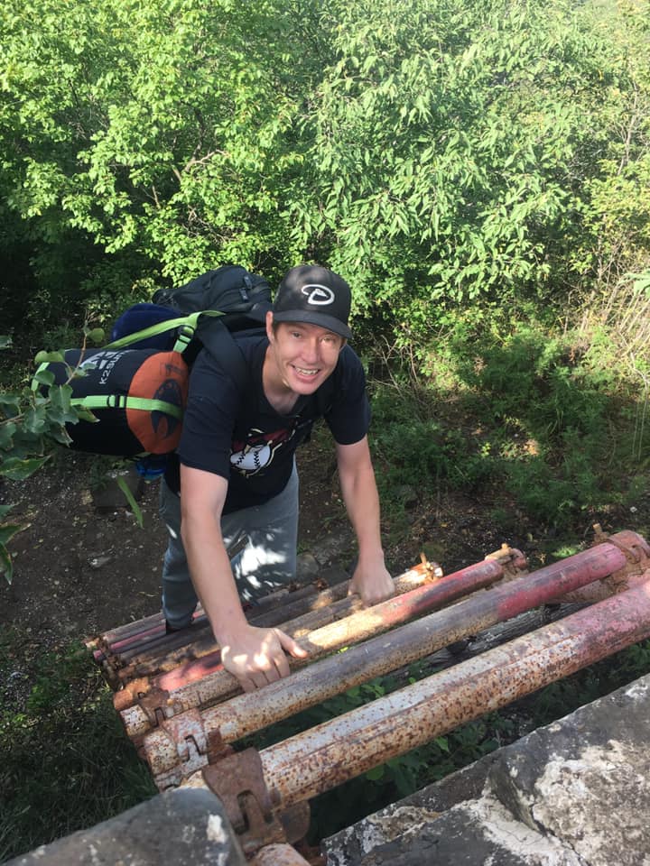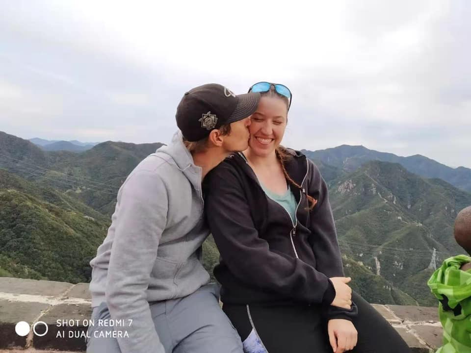 We finally saw at the base of one part of the wall that some trees had been moved away. We were towards the end of the 100 people group and sat and watched them climb down a rusty, metal ladder one at a time. Because there were so many of us, this meant we had time to sit down and watch everyone else go first. We were there so long that we saw a tour group come from the other side that we hadn’t yet hiked. Even though it was a holiday weekend, this remote part of the wall didn’t have people on it most of the time we were there, so we were surprised. After 20-25 minutes, it was finally our turn to climb down the ladder. Korey first, then Calvin (after throwing his backpack down), and then me! I wasn’t scared at all though the broken ladder next to it probably should have worried me a little.