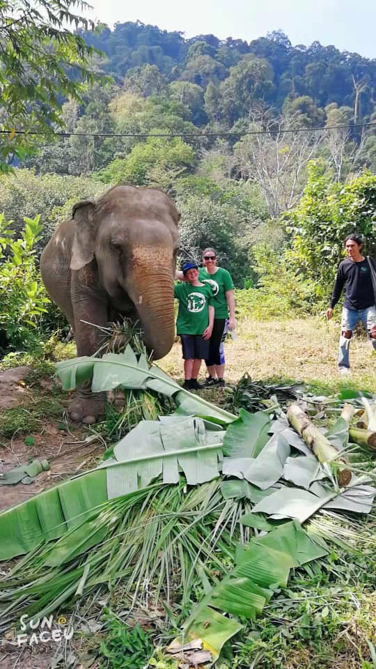 On our last full day in Thailand, the ladies and I really wanted to see some elephants (ones that weren’t being abused or mistreated). We decided the night before to go to an elephant sanctuary called Phuket Elephant Park about another hour away on the island. James and Korey respectfully declined, so the ladies and Calvin headed out early to see some elephants! We got there and found that the sanctuary was completely surrounded by jungle. They fed us breakfast and spent the first hour explaining what the sanctuary was there for and how their four elephants came to be there. We had seen many posters around the island for elephant trekking or riding. Our host explained that many of these industries severely hurt their elephants to discipline or keep them without food/water to keep up with the tourist demand. How did he know? He had worked for one for over a decade and had a change of heart, helping open this elephant sanctuary. He said the best way to help the elephants was for tourists to stop paying to ride them or see their shows! Many of these companies used hooks on the elephants and a few of the elephants we saw had holes in their ears as proof, it was heartbreaking. It takes one million baht to buy an elephant, even a blind or injured one. This park had four female elephants and we got to see them all. The youngest one was 42, the oldest was 70.