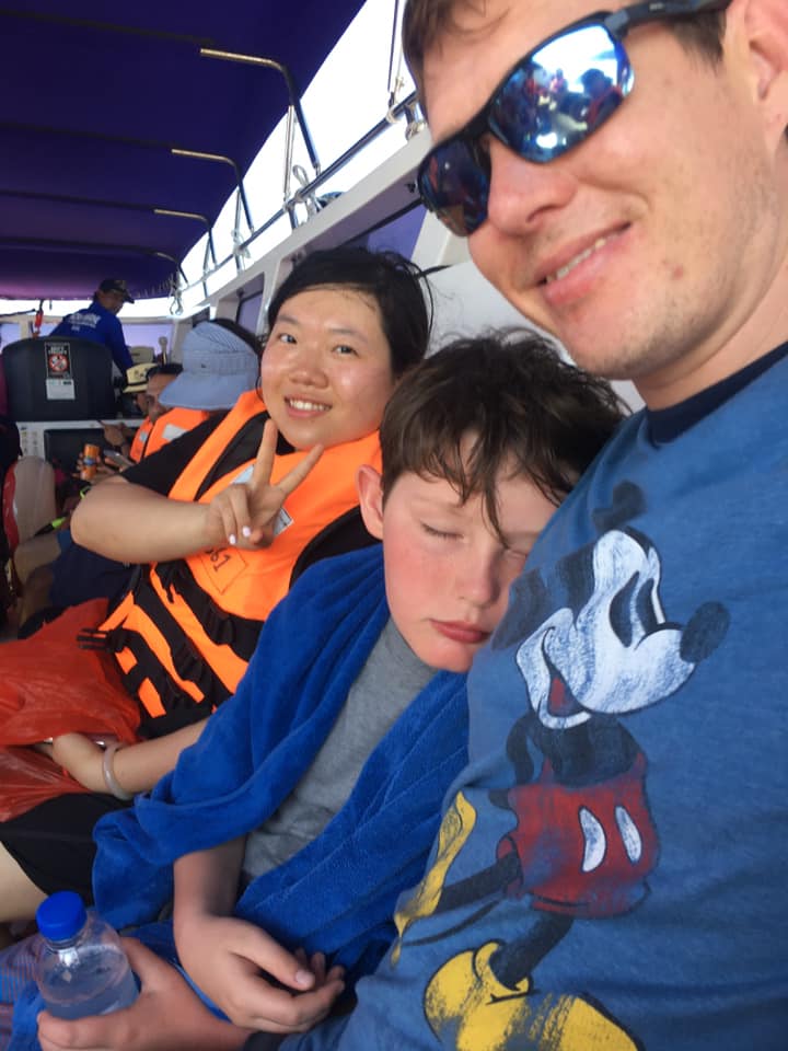 The tour guides took us by tractor-led wagons to a restaurant behind the resort where we ate and used their free bathroom. The food was pretty good and we were exhausted after snorkeling and swimming in the hot sun. Afterwards, we wandered around and saw giant monitor lizards that are native to the island! They were huge and swam in little lagoon areas that were present on the island. Don’t worry, we didn’t get too close to any of them because I couldn’t remember if these little monsters were dangerous or not. Plus, the size of these things was enough to make any in our group second-guess ourselves. Eventually, we headed back to the beach where Calvin and I swam another hour thanks to his dad buying him a brand new snorkel set. The tour ended up staying on the beach another two hours, which honestly was a bit too long. Most of the group was exhausted and ended up napping in the shade of a beach bar whilst waiting for the boat to return. I took Korey’s chair after Calvin and I got back from swimming and passed out for almost an hour. But the boat came back and we headed for home! Despite being back by 4:30pm, no one the left the house that night for dinner!
