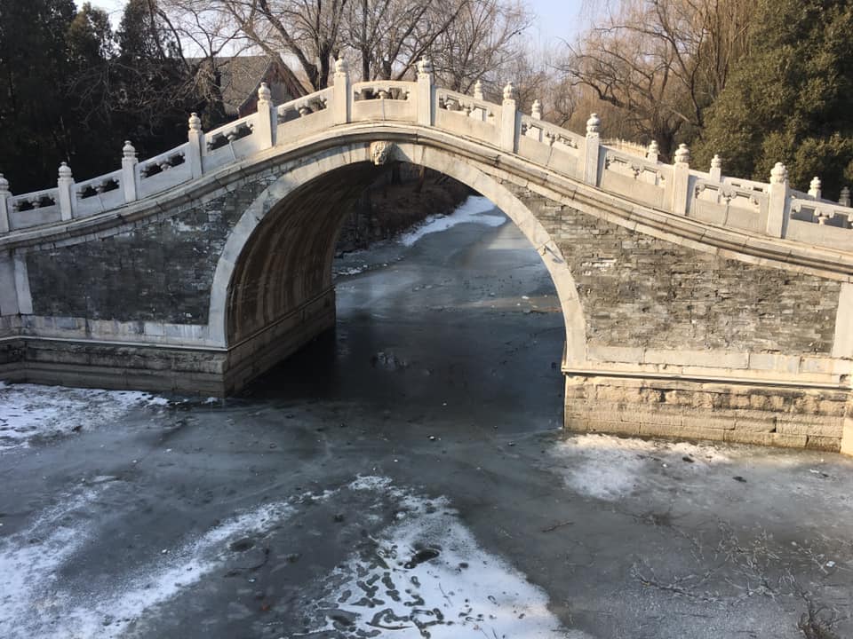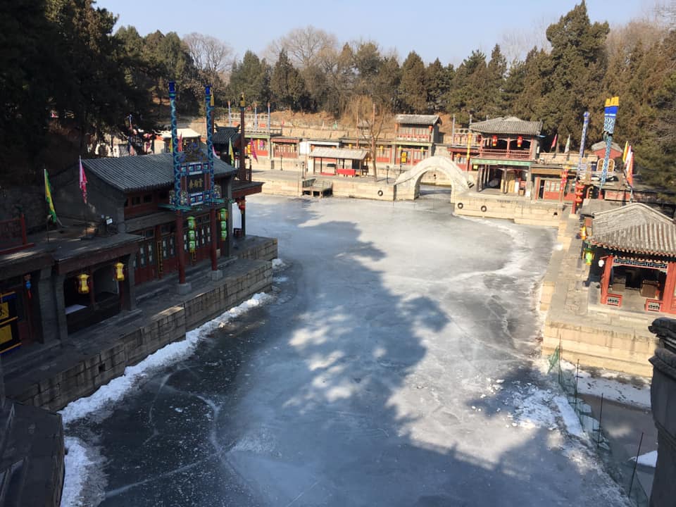 One of the last stops of our tour was ‘Suzhou Street’, named after the Chinese city known as the ‘Venice of Italy’ with its many canals, bridges, and waterways. This market-like area was created so that the emperor could go buy items in a market setting without putting his life in danger. There were 64 shops created and runs along a small canal. Typically, there would still be shops with many different over-priced goods and food for sale along a beautiful flowing river. Our guide said the salespeople where traditional clothes and it is quite an experience for tourists visiting the Summer Palace. Unfortunately once again, it was winter and during the Spring Festival break so there were no over-priced goods, shop keepers, or an open entrance to the street…closed again! Still, the street was gorgeous from the walkways above and I can’t wait to go back in the fall to see how it all looks when it has thawed a bit.