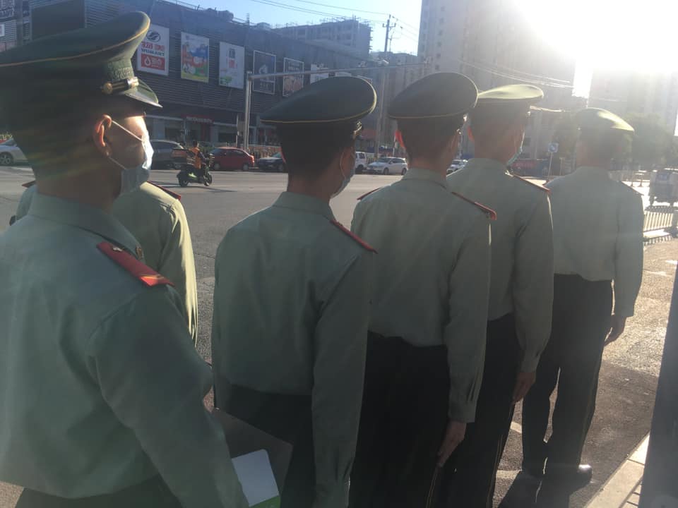 The last week of May, the teachers were at Kaiwen getting ready to welcome back the students. It was exciting since some high school grades were already there and most of the teachers were there. We were printing out our work, making preparations for teachers that wouldn’t be back on time, and learning how to open under the government’s preventative measures. I have never been so excited to head back to school and I can say that with 100% honesty. The Party was also meeting the last week and there were soldiers everywhere! I mean at subway entrances, crossing the streets, and even camped outside my school in tents. They were guarding the communications tower that lies on the edge of our campus and were there all week. I know that many would be intimidated by the thought of uniformed soldiers walking around, but it was the complete opposite. They didn’t carry guns or any other noticeable weapons, it seemed they were just meant to be a reassuring presence. I managed to get a few photos of them in different places because they weren’t hard to spot!