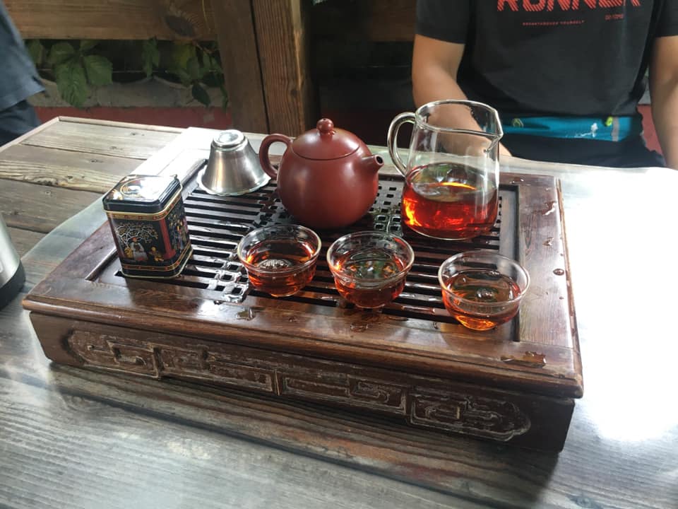 Korey and I tried to celebrate the end of summer with a really nice hike with his friend Ablikim. He took us to a park only 10 minutes away from our house that we had no idea it existed! It is called Badachu, or ‘Eight Big Spots’. Basically there are eight different scenic spots in the park that you can visit and we got to see at least 5 of them. While we did see most of the temples, our biggest goal was to hike to the top of the mountain. It hasn’t been our hardest hike in Beijing, but it was a pretty good one! We could see all the fun stuff they had to offer including cable cars, slides going down the mountain, and lighting incense at the Buddha statues. We were even there in time to see the Buddhist monks chanting around 9 am in the morning. I still can’t believe that there was a giant green area in the middle of a city of 21 million, and I had no clue that it was there! It was a beautiful hike and worth going! On the way down, Ablikim suggested we stop by a tea shop at the bottom of the mountain. I hadn’t had any authentic Chinese tea whilst here, so we gave it a shot. We had Pu’er tea and ordered hot sesame paste noodles. It was the perfect ending after a long hike. A great workout and a great morning!