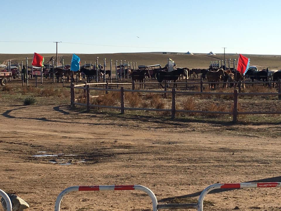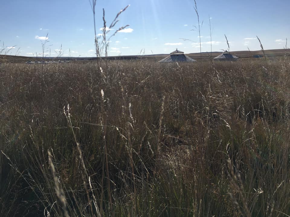 We woke up the next morning to horses outside on the other side of the gate! We put our belongings onto the bus and headed over for our last event, the horseback riding in the grasslands. Getting the helmets was easy, but that was probably the easiest part of this whole venture. It came time to get onto the horses and you are being yelled at by a bunch of different men on which horse to choose. You don’t speak the language, so you have no idea what they are yelling at you or why. I tried to follow Korey and Calvin to a bunch of horses, but they got snatched up pretty quickly. Luckily Korey and Calvin got their desired horses and I tried to walk up to a larger one that no one was near. Well this horse was WAY bigger than the Mongolian ponies. I could not get on this thing and the men in charge of the horses were loud and rude. Our group had over 70 people and the rest of them were on the horses and gone before I was able to get on my horse. Myself and a kid that had never ridden a horse before were at the end but caught up after 20 minutes.