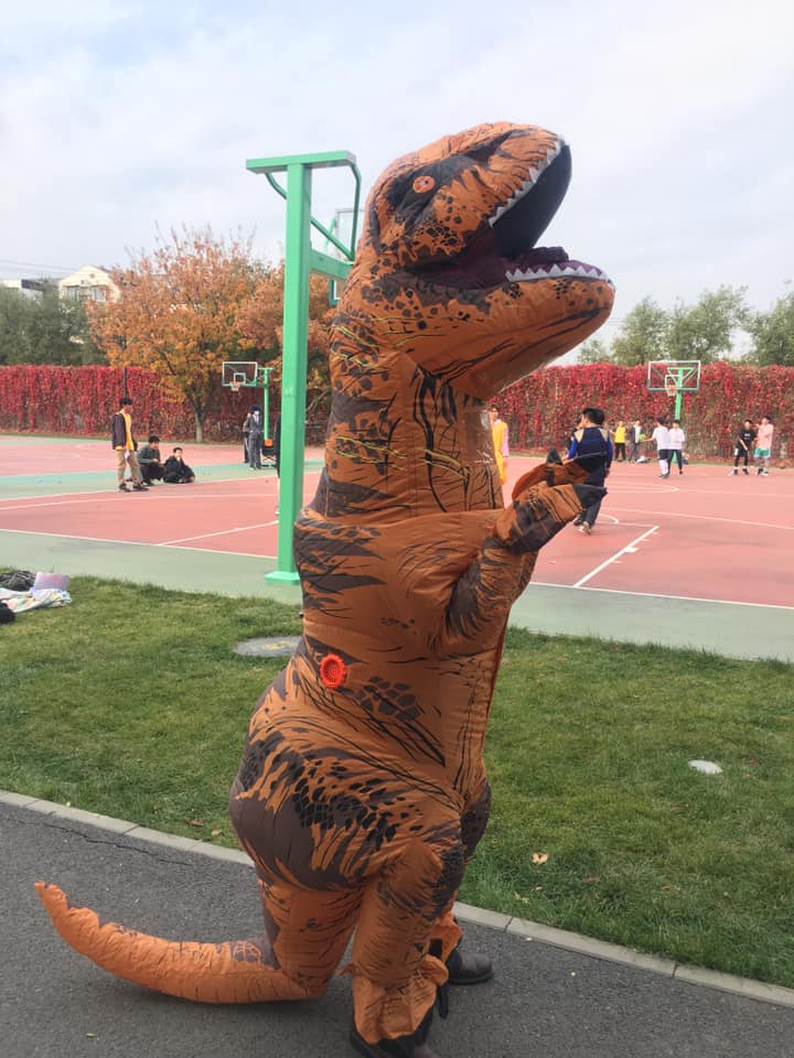 Finally, we had our second Halloween in Beijing and it was beyond amazing. I kind of pushed my team into dressing up together and we decided on inflatable dinosaur costumes so we could call it ‘Jurassic Period’ Park. It was wonderful to be able to come together as a team and do something fun for our kids. I also volunteered myself and one of the other teachers to go to the kindergarten in our costumes and surprise them with the dinosaurs. It was absolute insanity and I knew to expect that. The Social Studies department usually goes to the kindergarten for Halloween and I have heard stories about the kindergartners attacking in the past. I can say for certain that it is a real thing. Those kids saw us coming and got so excited, that the punching and grabbing began almost instantaneously. Thank god that I was wrapped up in an inflatable dinosaur otherwise I may have ended up injured! lol.