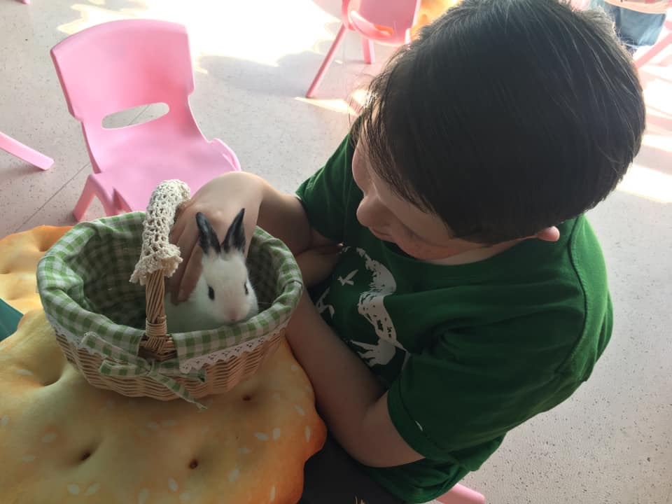 We had so much fun with his friend that we invited our friends Jonathan and Sarah to go the next day because they have two young boys! As we waited for them to show and Hi-Fun to open, we found that there was a store nearby filled with baby ducks, chickens, bunnies, kittens, and puppies! It didn’t have the typical pet store vibe so we asked someone waiting in line what the store was about. It turns out, that it was a store to pet these baby animals for an hour at a time. I was so excited by this and decided to surprise my friends’ family with the animal hour after we finished at Hi-Fun. So we had a great time a the arcade and won a ton of tickets. It was great and then we brought all of the boys over to the animal store to have fun with the baby animals. I can truly say it was a fun experience. The animals are so tiny and adorable. The staff gave you baskets so you could hold the bunnies or chicks, and they were so used to it. I could put a basket in the inclosure and the bunnies would just jump in. Calvin’s favorite animal right now is the duck and he spent the whole time chilling with this older duck on a pillow in his lap. It was truly precious! ❤