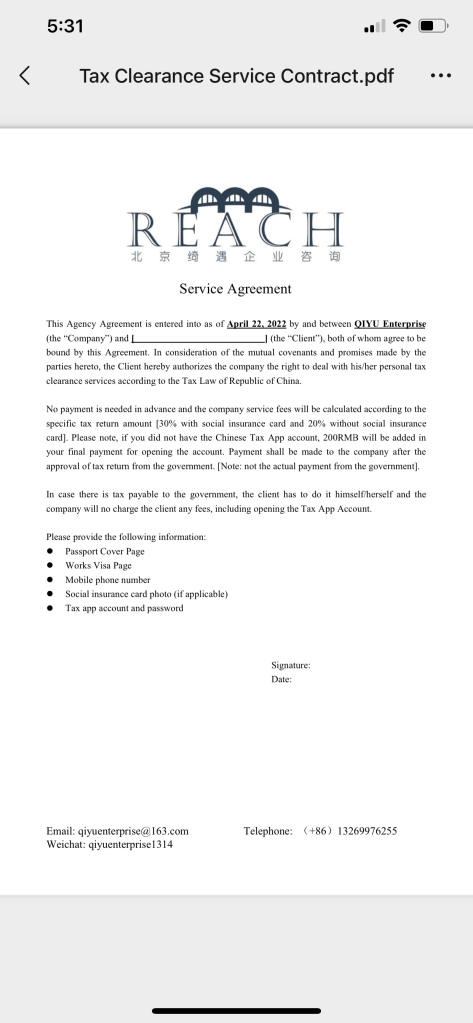 All in all, the preparations to leave China need to be done over a span of time. Do not expect to be able to get started a month before you leave and not have any difficulty. I would start speaking to your school’s HR about 3-4 months ahead of time and finding a tax expert at least two months ahead. Keep in mind that different provinces within China might be slightly different and not the same as Beijing. Definitely talk to other expats and join their WeChat groups on leaving China. There are a TON of them ever since Covid and they are constantly updating the expat group about leaving and new regulations.